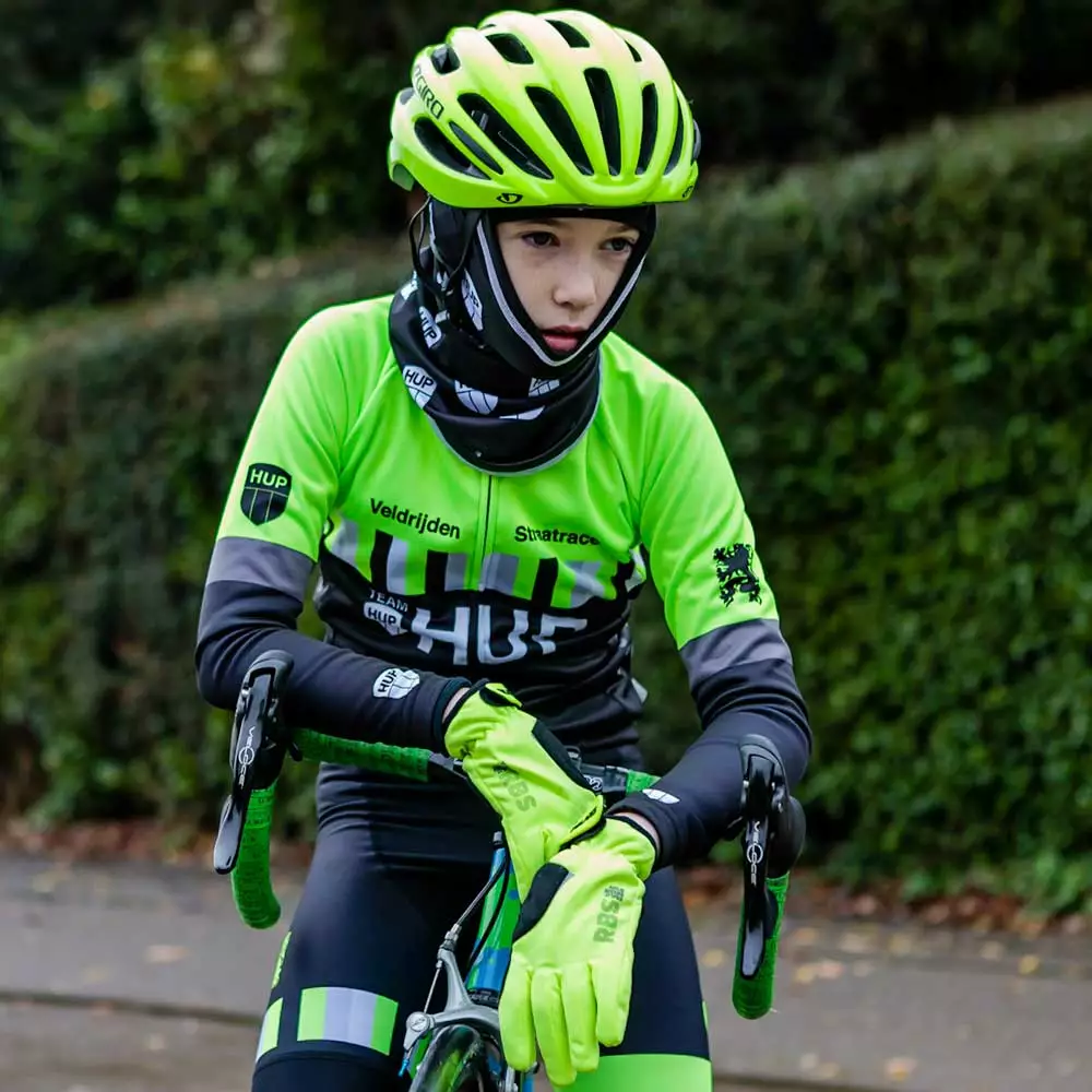 Stylish Kids Winter Cycling Neck Warmer with HUP pattern and Flanders Lion detail. Effective and comfortable way to keep their exposed face warm on Spring, Autumn and Winter Cyclocross or Road rides.