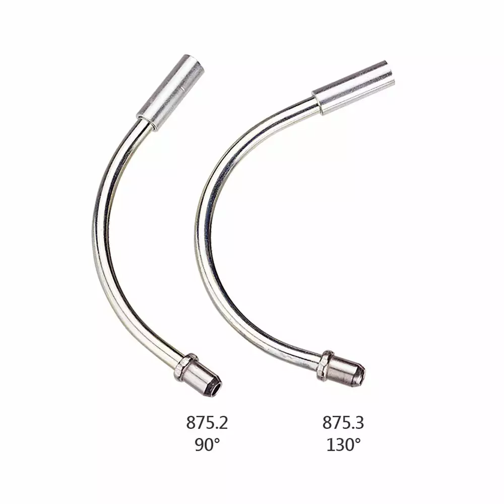 A pair of lightweight Tektro cable guide pipes for use with V-brakes. 90° for the front brake and 130° for the rear brake: